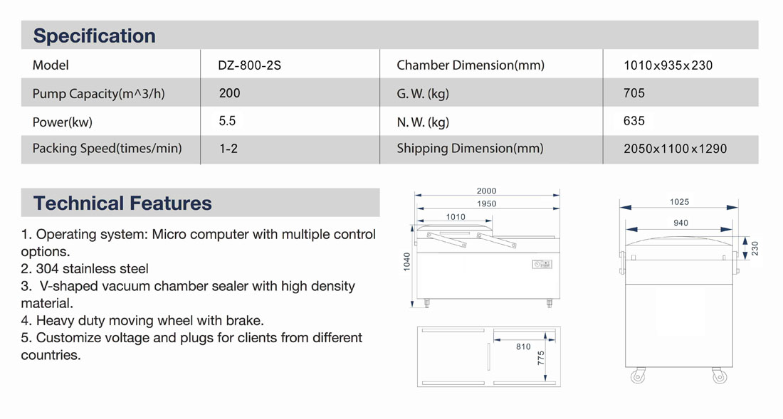 Home PRODUCT Vacuum Packaging Machine Double Chamber Type DZ-800/2S Double Chamber Type